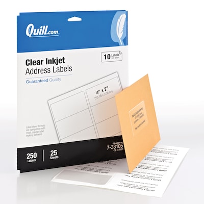 Avery 18695 Address Labels - Office Depot This pack of Avery matte clear labels is the clear choice for sprucing up ordinary mailing, envelopes and packaging. These matte clear labels basically disappear when applied to white, light-colored or textured paper. Use these clear labels on vellum envelopes and glassine bags to create a printed-on appearance.